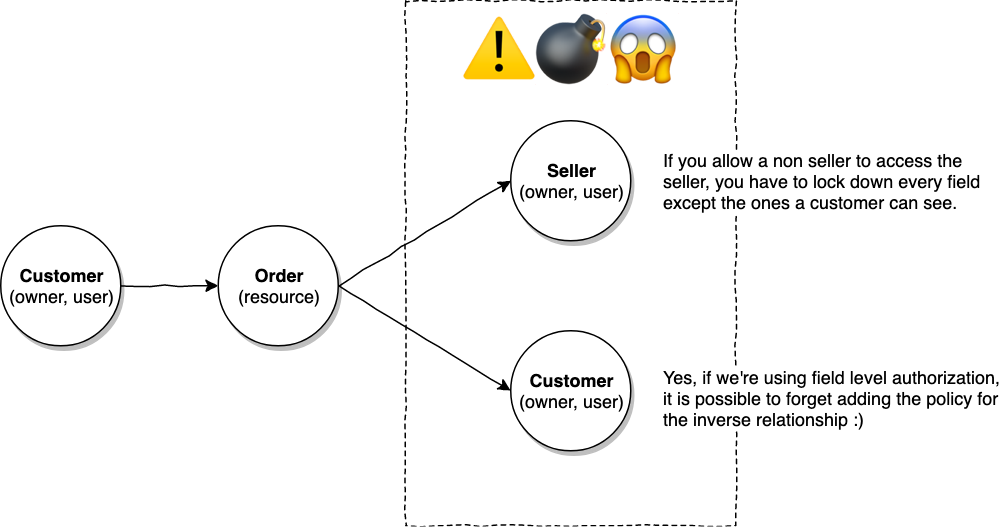 Wait wait. What about the use case we had right here to show the product seller's name? This policy is going to prevent the customer accessing the seller's name because customers have no access to seller objects.